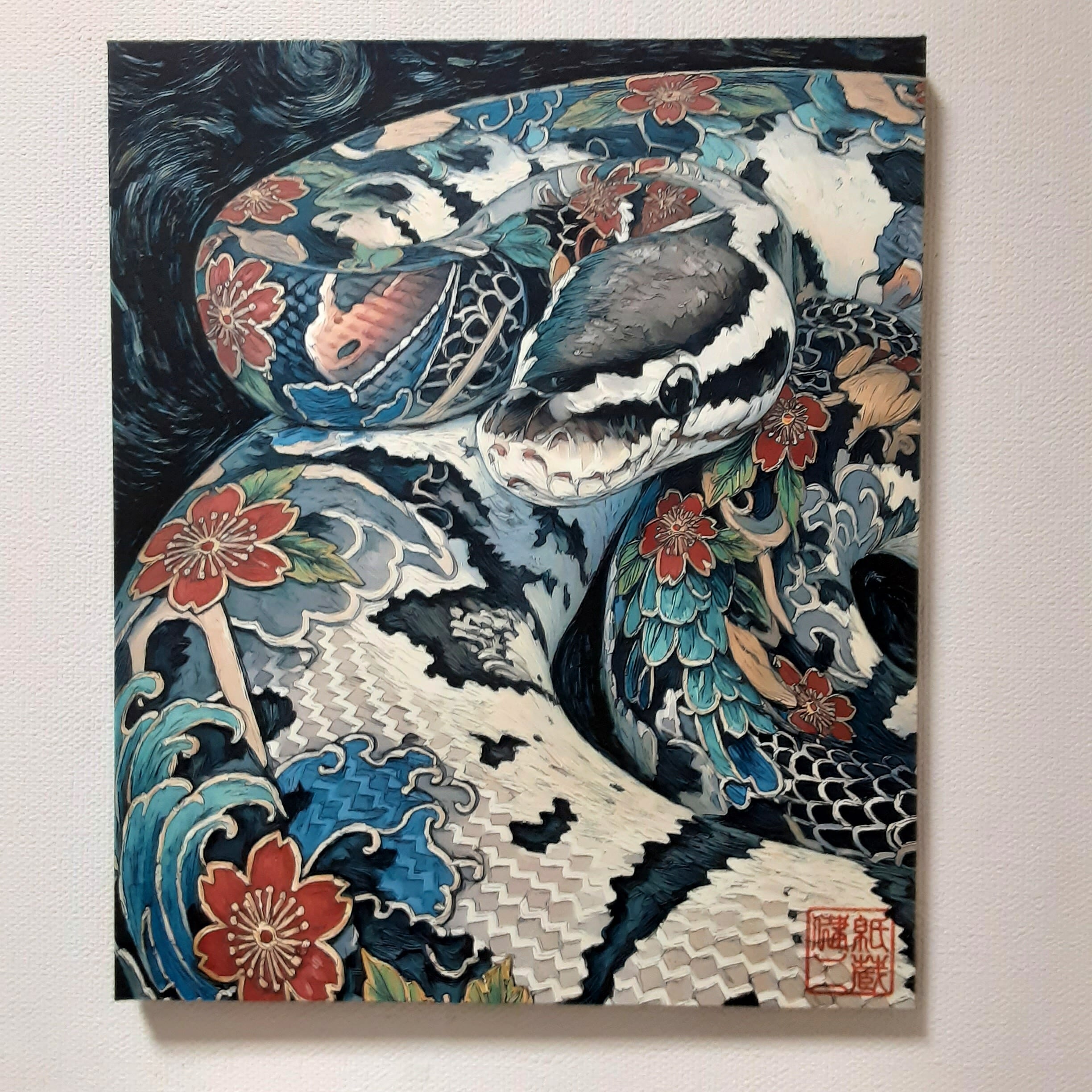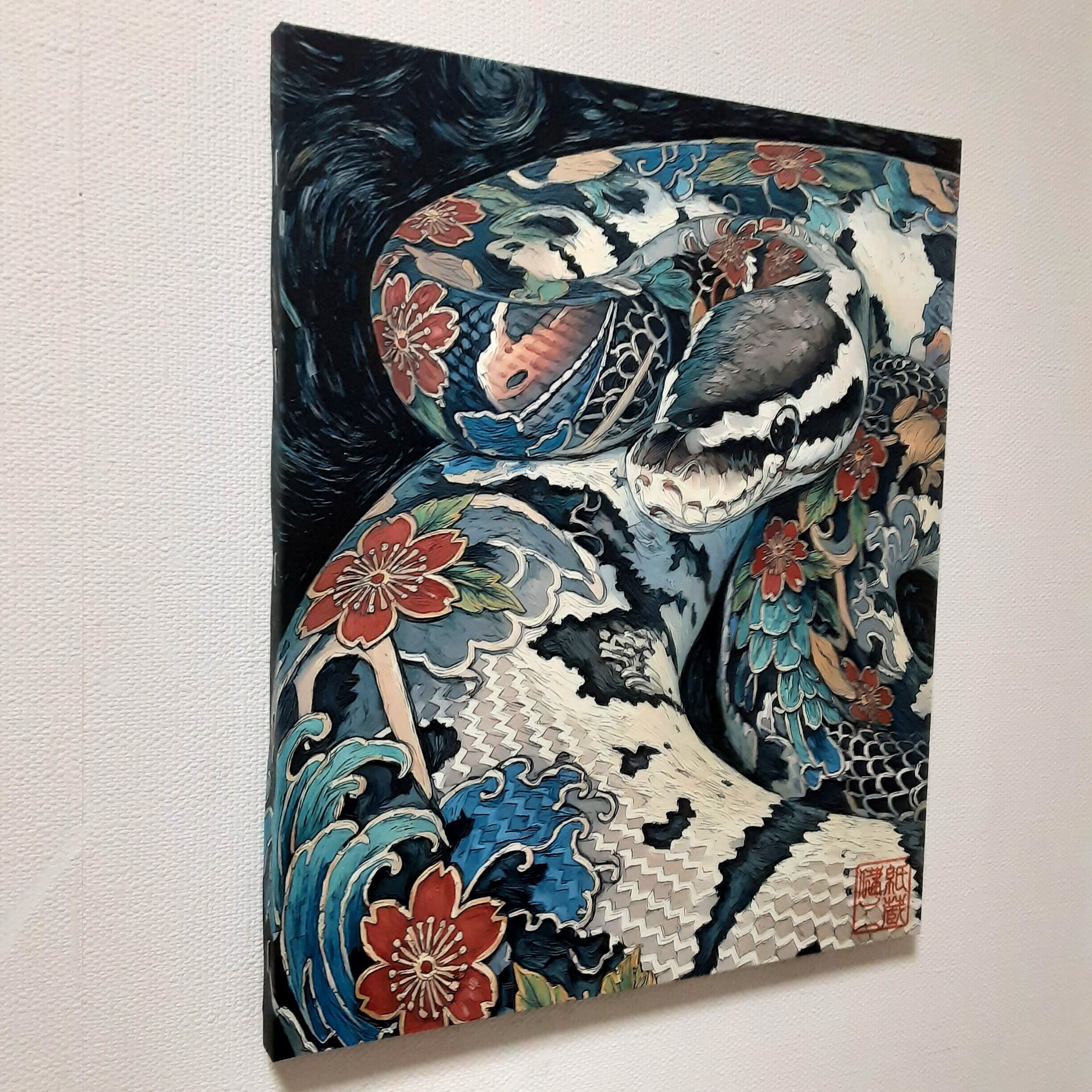 絵画【ボールパイソン・和彫りアザンティック2】