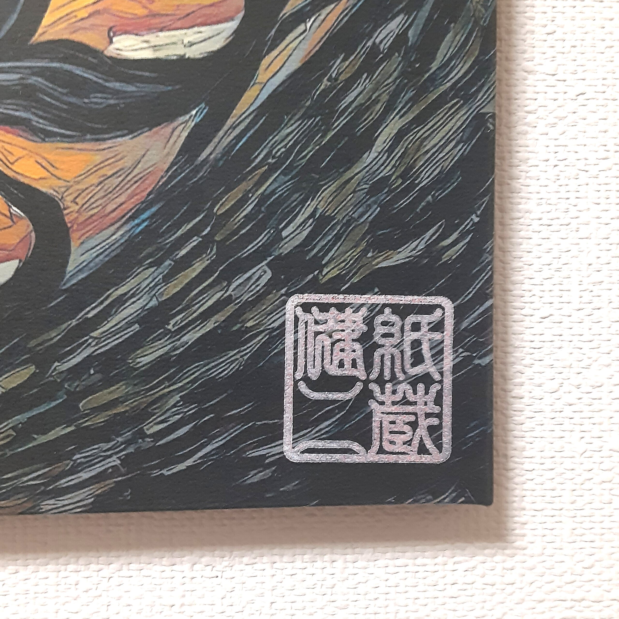 印刷したものになりますので原画ではありませんが、下方のハンコ「紙蔵健二(ペパクラけんじと読みます)」を心を込めて押させて頂きました。