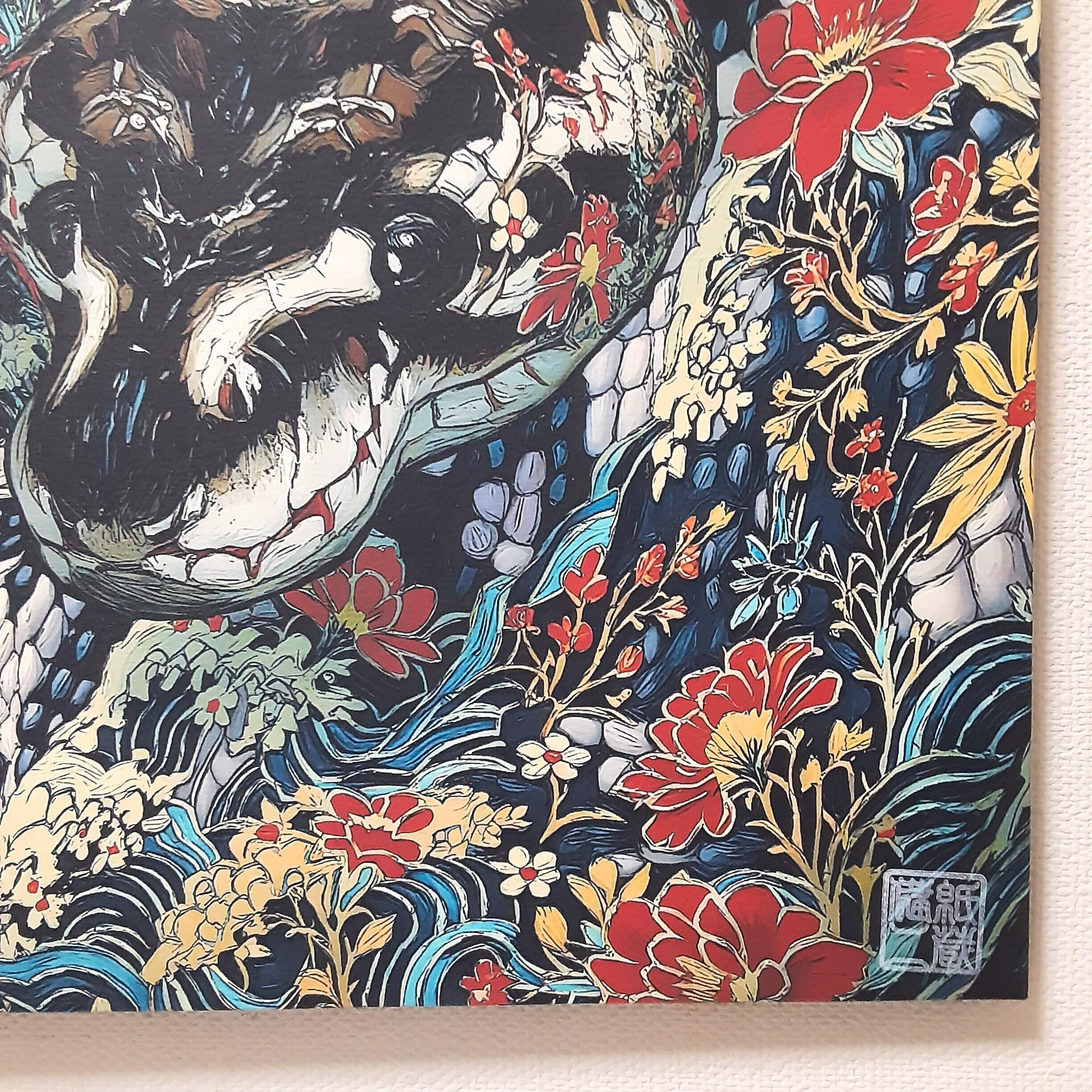 印刷したものになりますので原画ではありませんが、下方のハンコ「紙蔵健二(ペパクラけんじと読みます)」を心を込めて押させて頂きました。