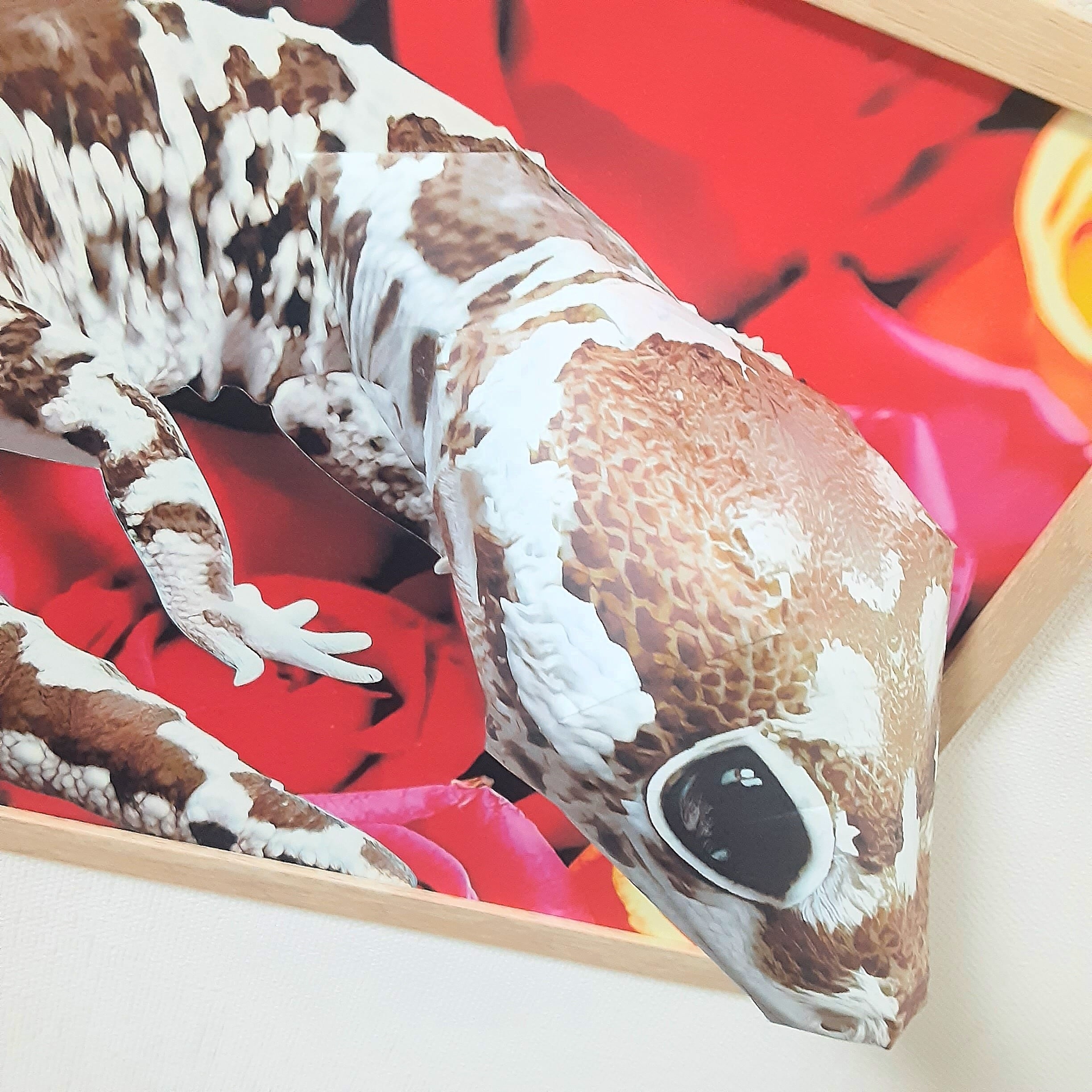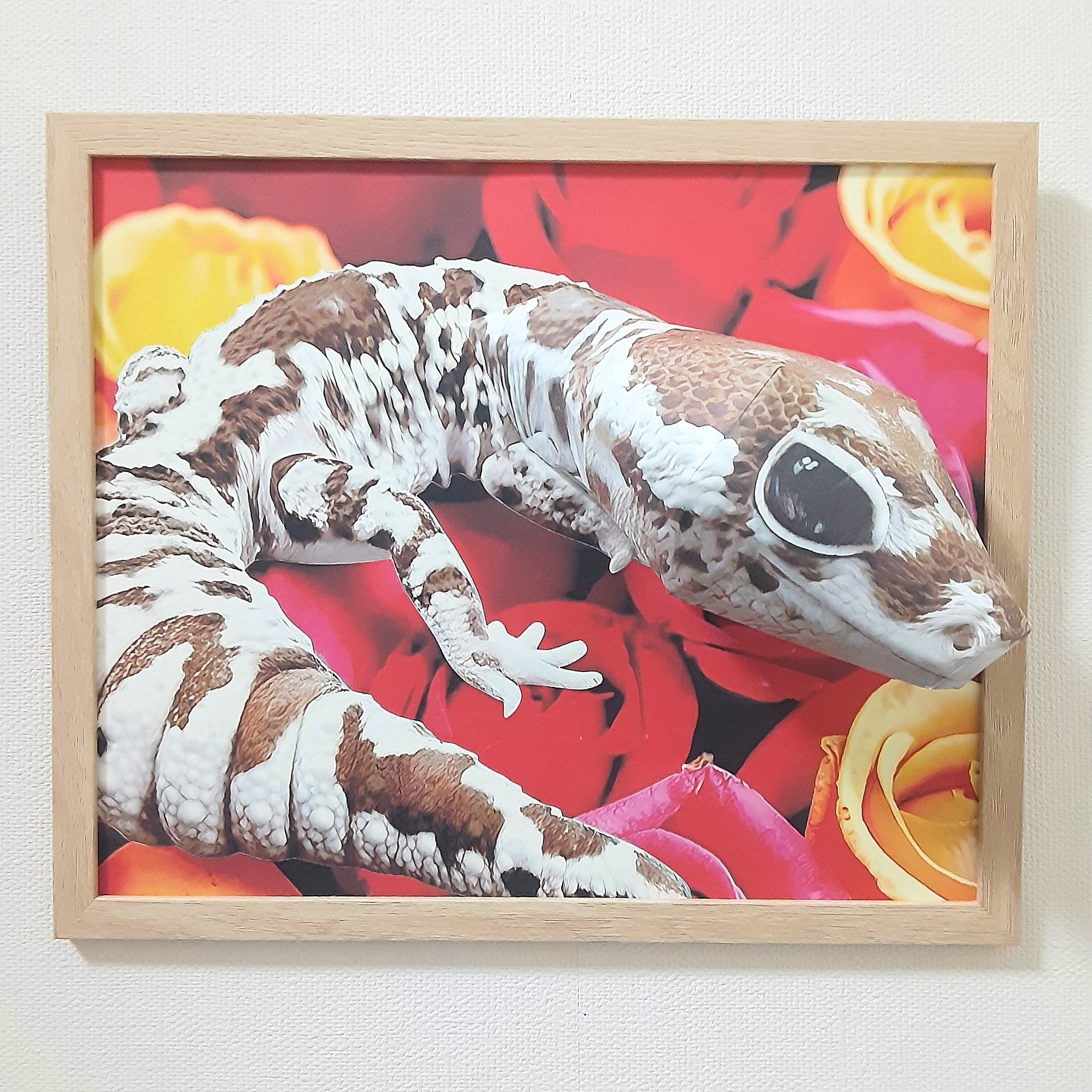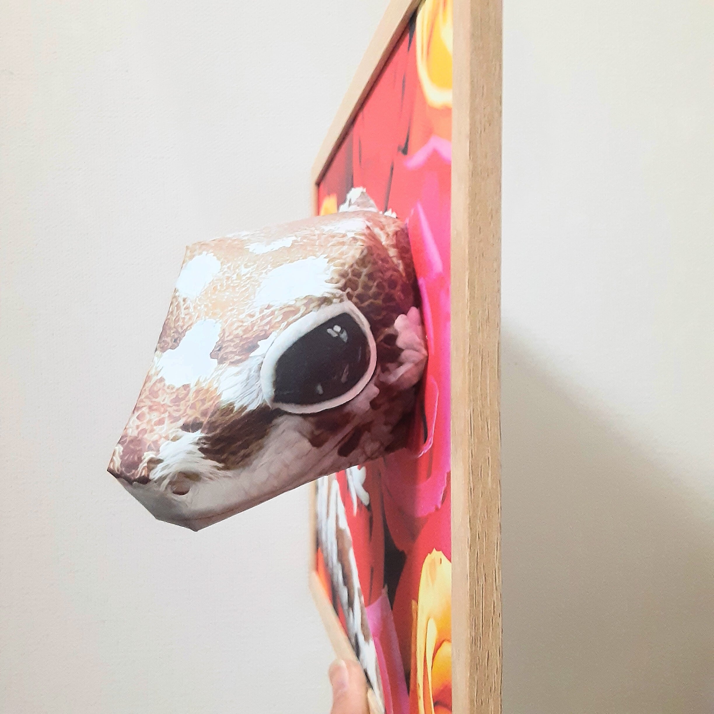 「ニシアフリカトカゲモドキ・ホワイトアウトオレオ」ペーパークラフトとびだし絵