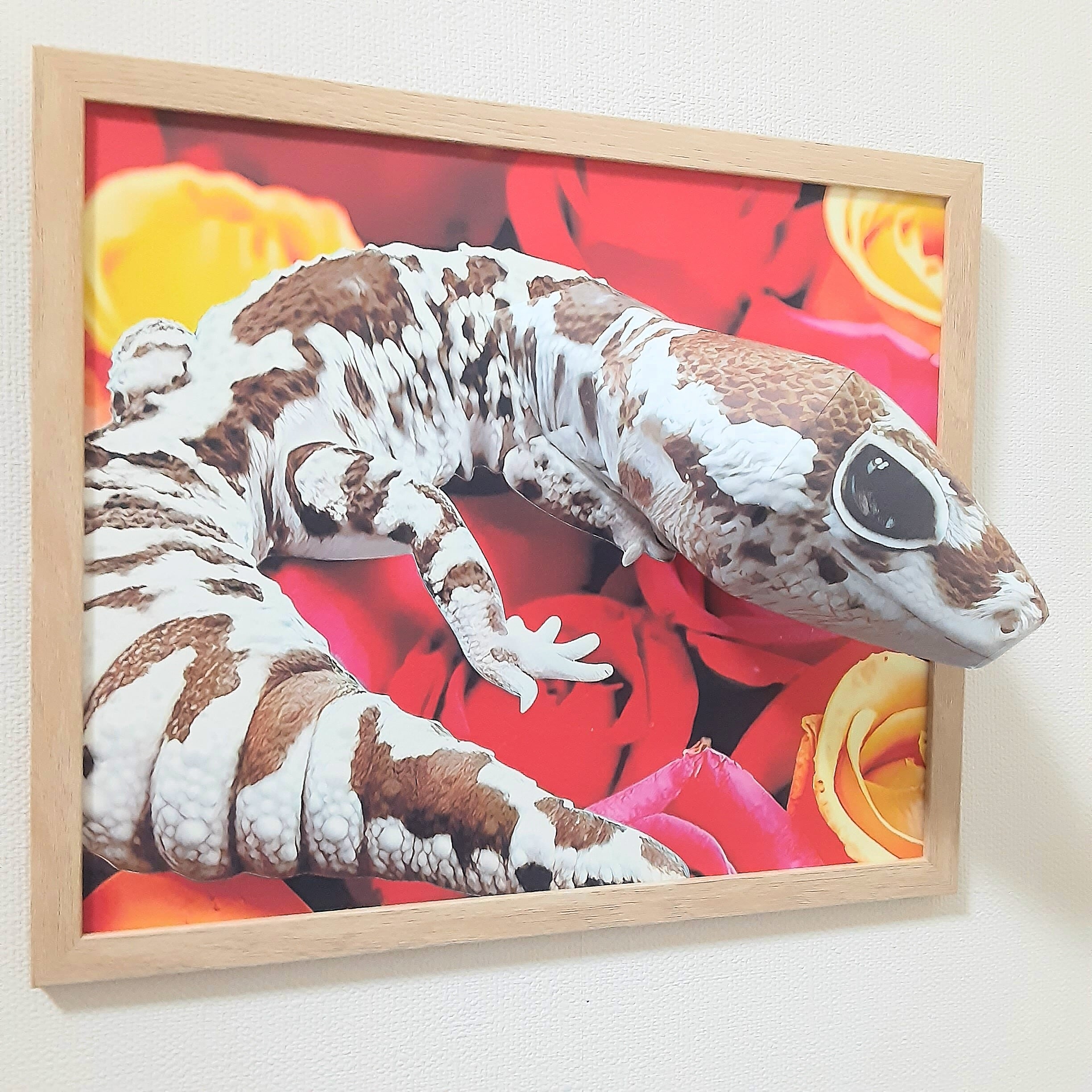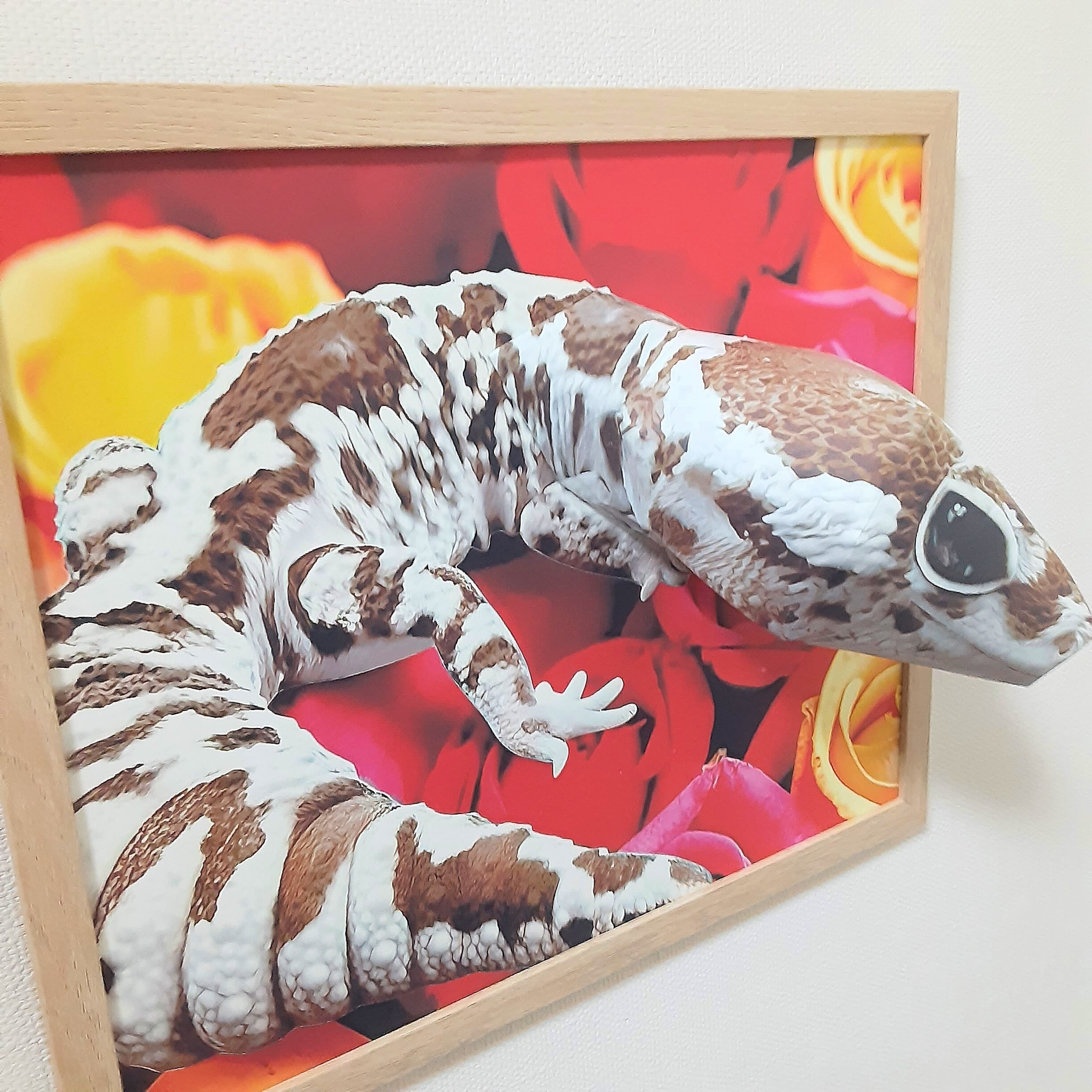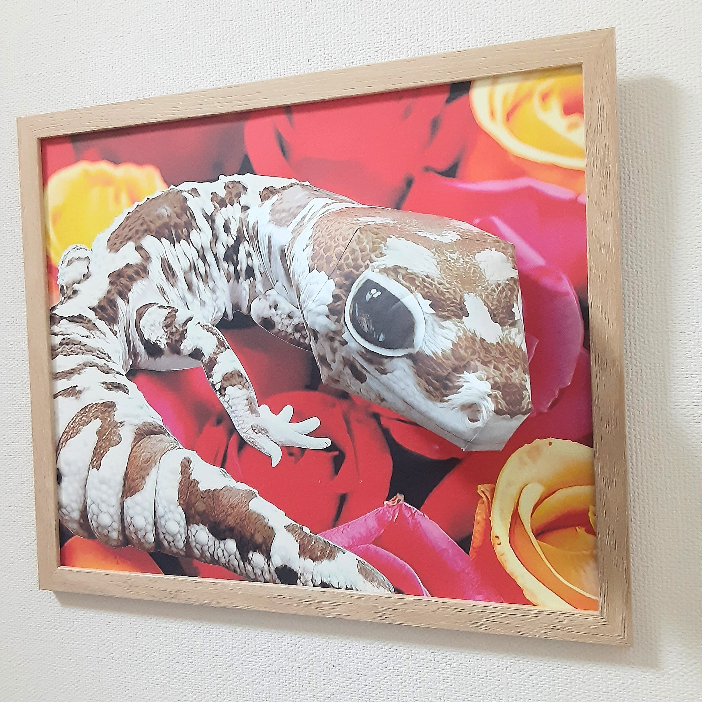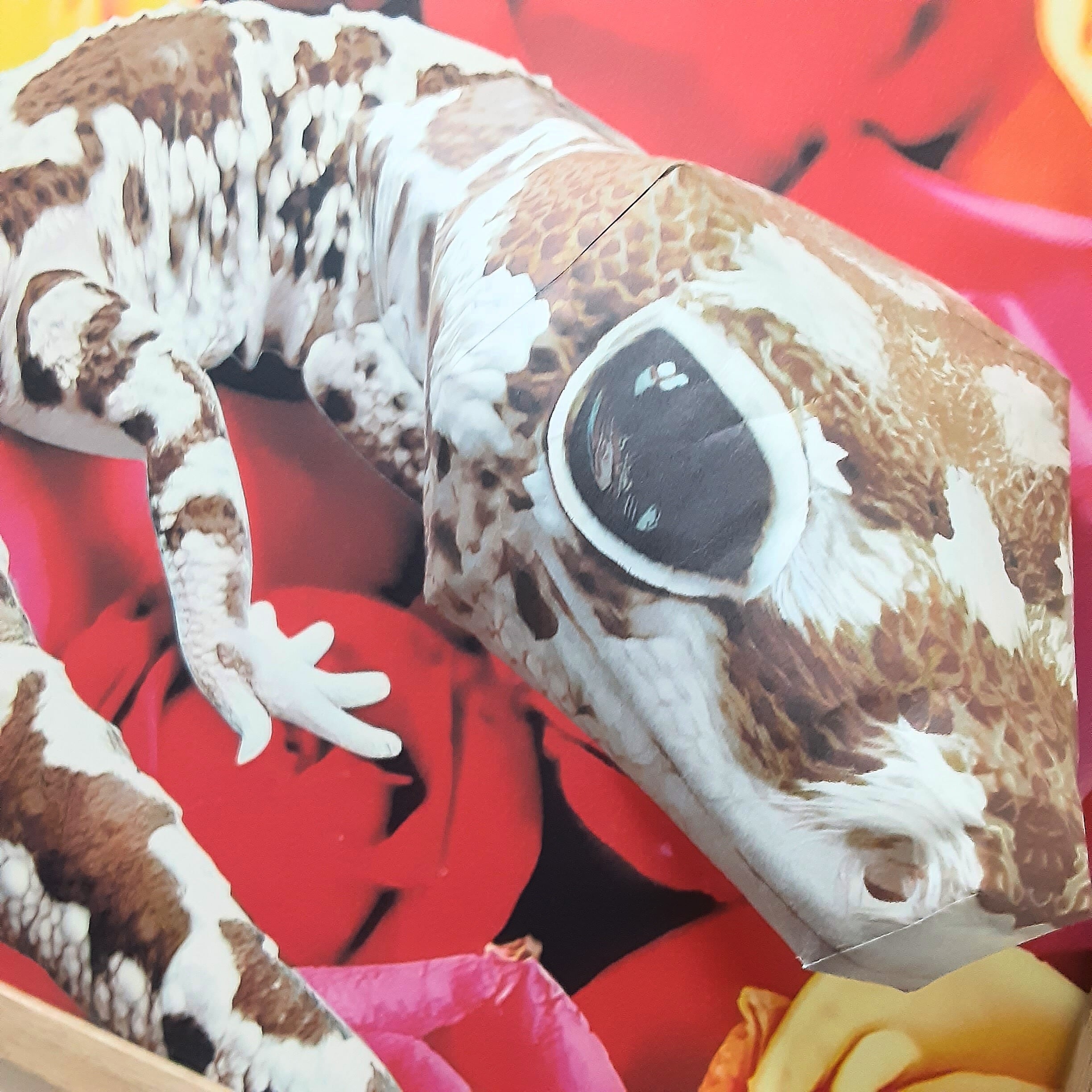 「ニシアフリカトカゲモドキ・ホワイトアウトオレオ」ペーパークラフトとびだし絵