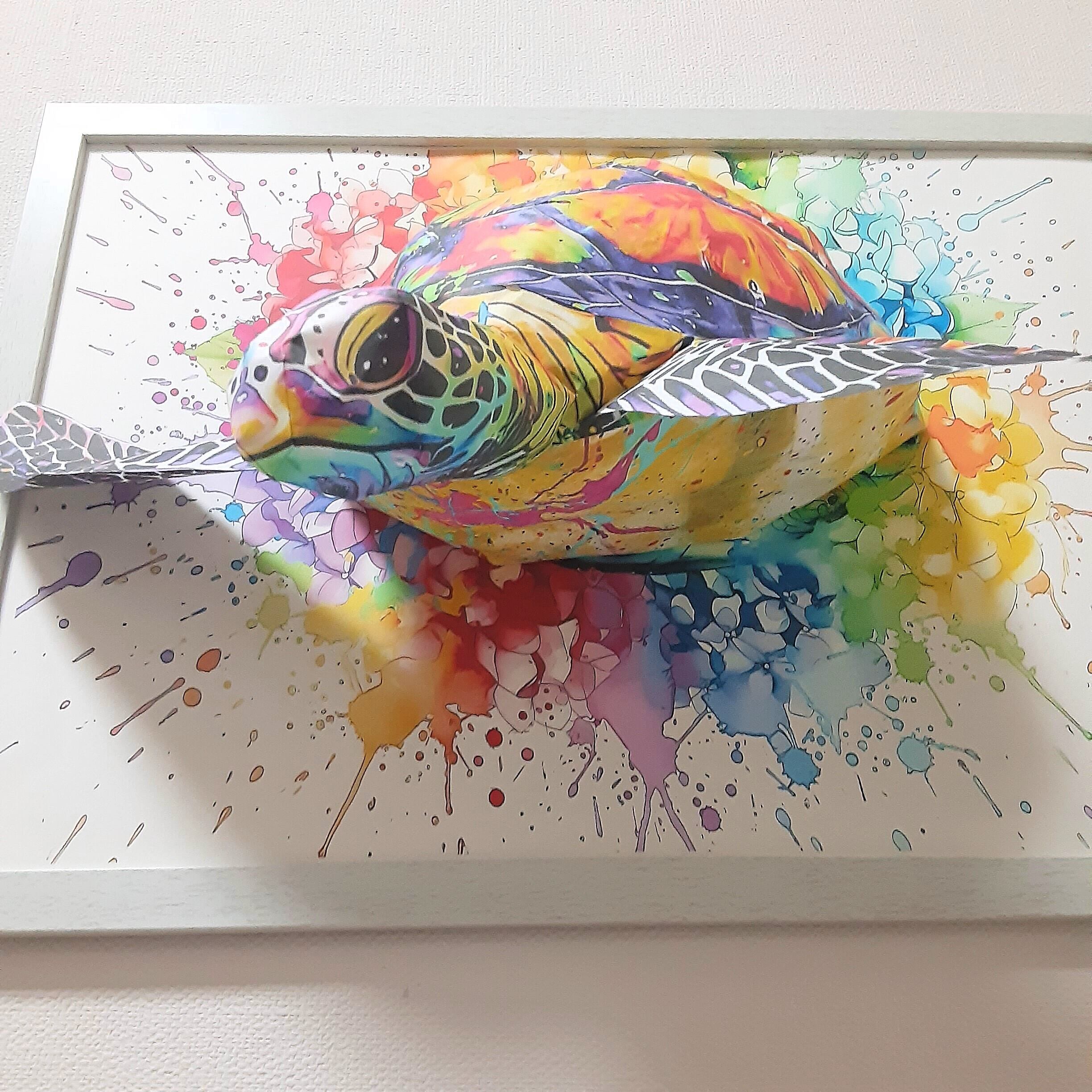 「七色のウミガメ」ペーパークラフトとびだし絵 / A3サイズ