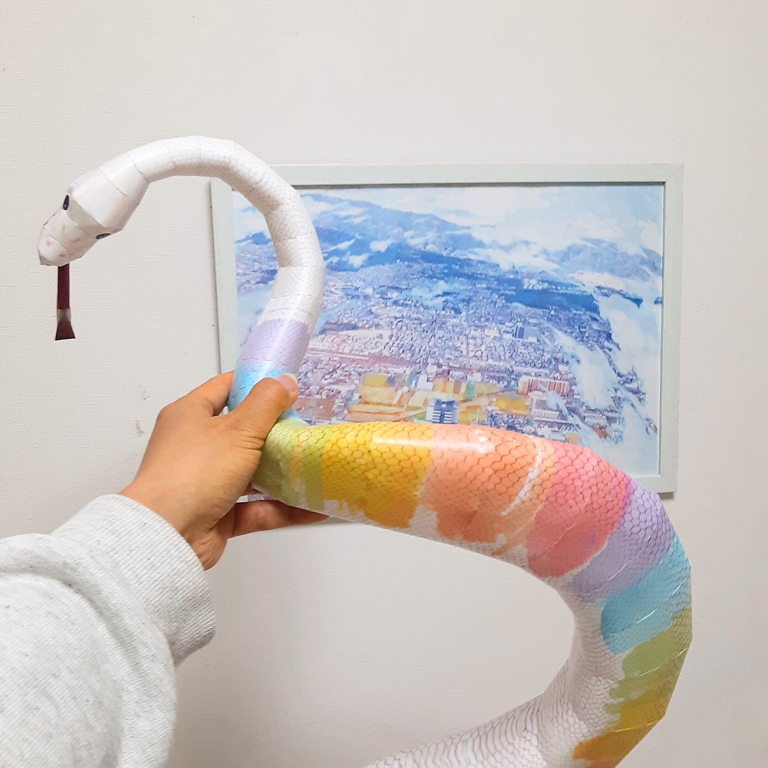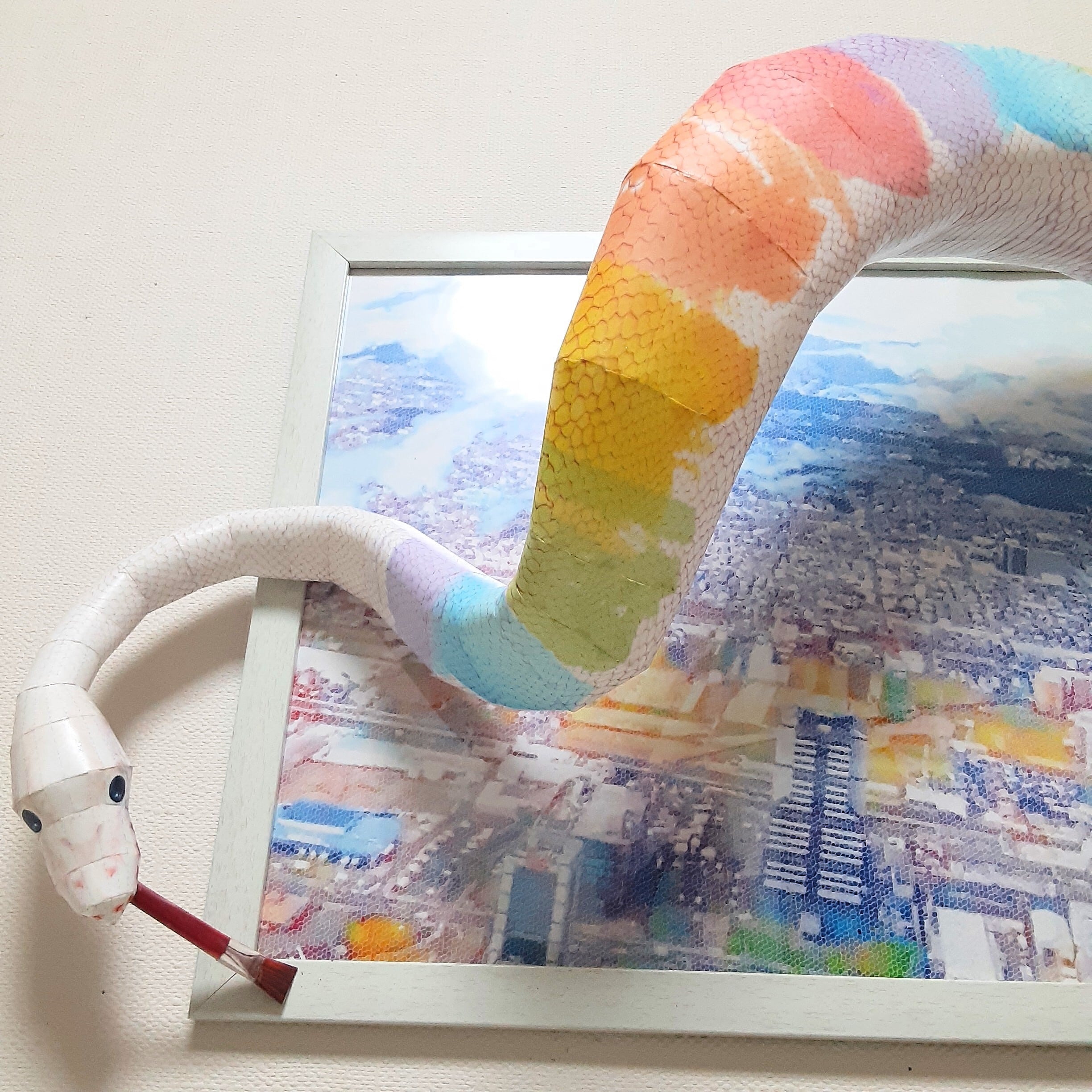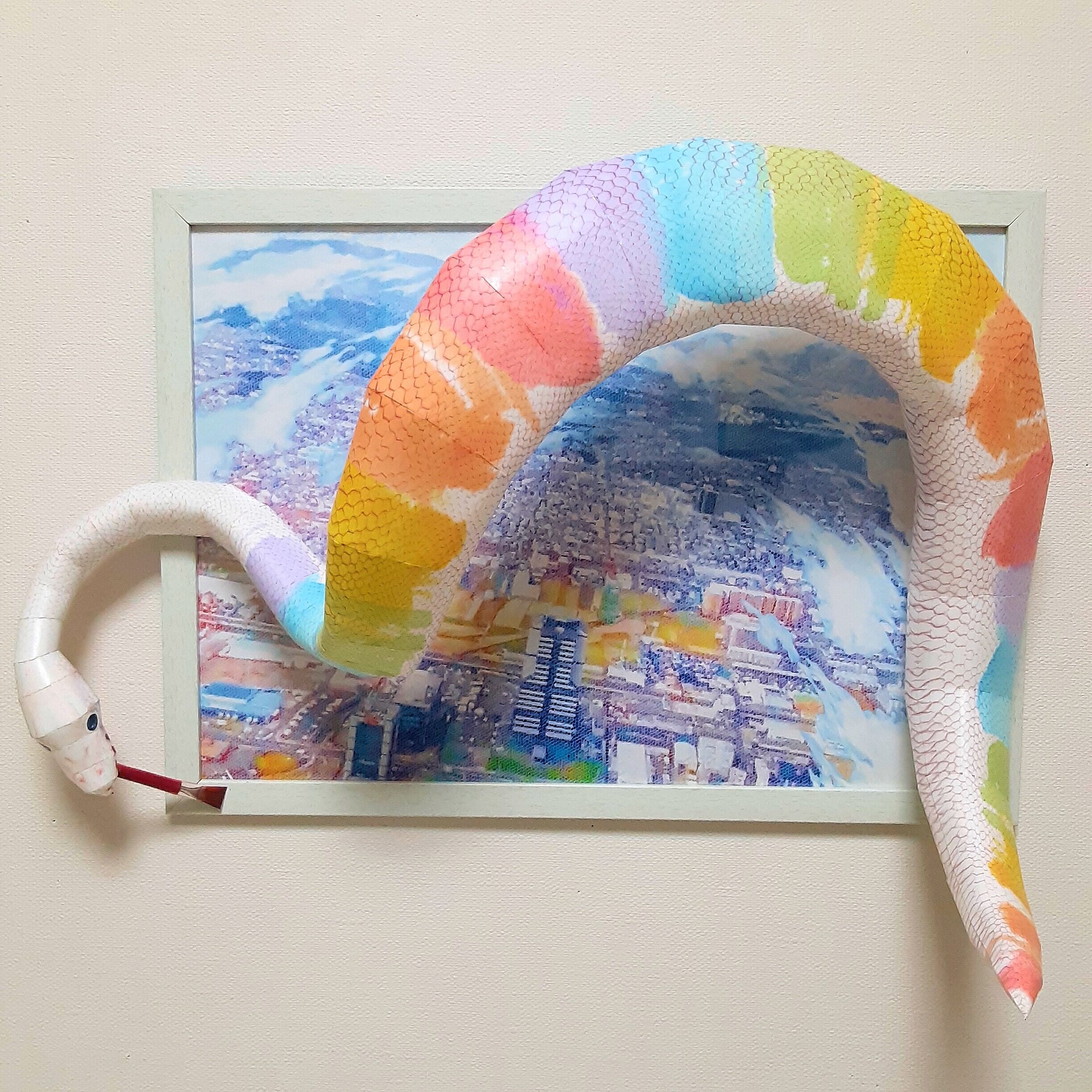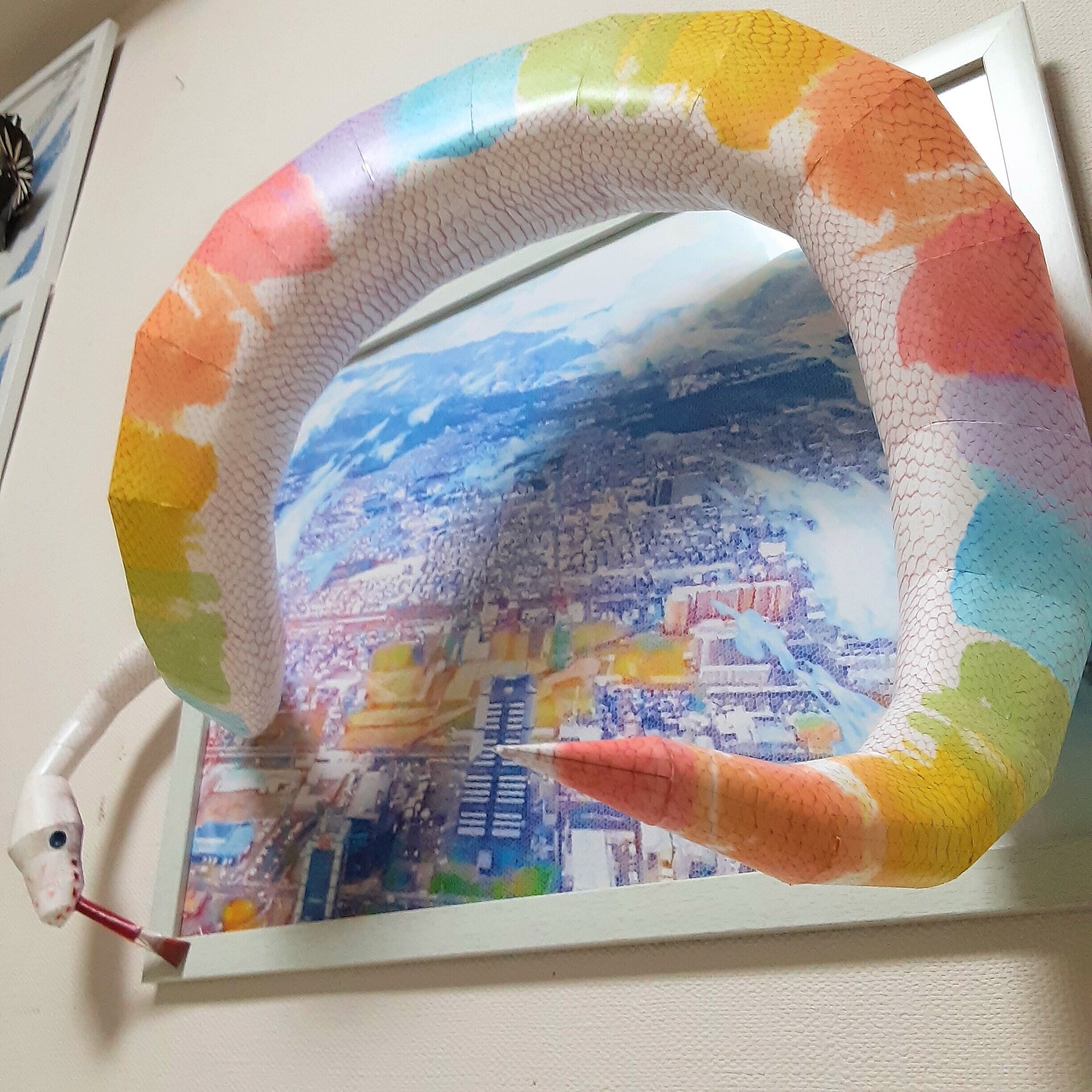 ペーパーアートを通じて人と人との喜びの「虹の架け橋」になりたい。そんなヘビの気持ちとGallery紙蔵の想いが形になった作品です。